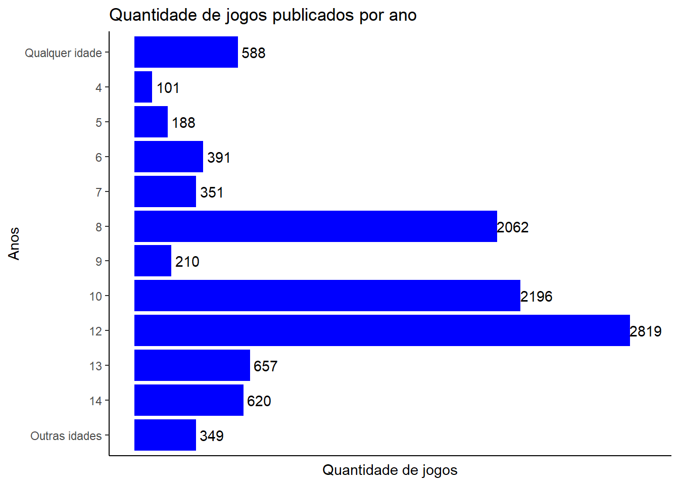 Uma criança com 12 anos já consegue jogar quase 85% dos jogos identificados no banco de dados, sendo que uma criança com 10 anos já consegue jogar a maioria dos jogos.