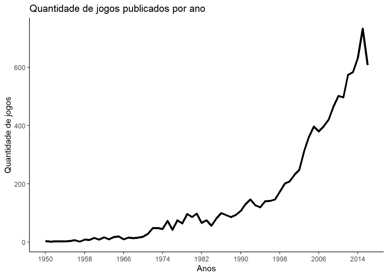 Abaixo segue a quantidade de jogos publicados por ano, que até 2014 vinha em uma crescente assustadora.